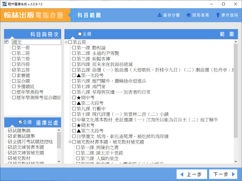 112學年上學期 高中命題光碟 翰林版 國文科(一、二、三、四、五、素養題、混合題、多選題組、歷年學測指考、歷年學測模考混合題組)(108課綱) 題庫光碟